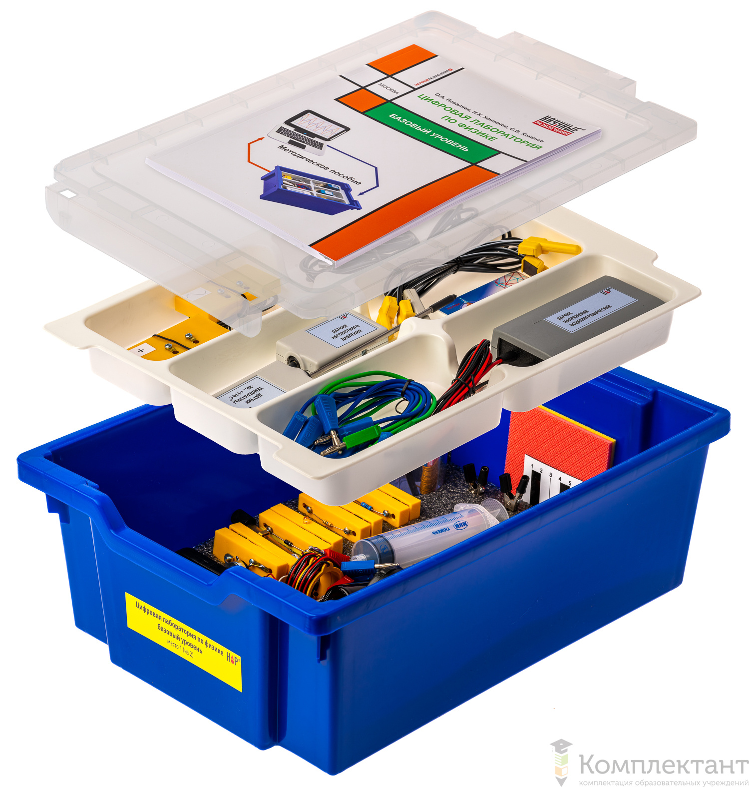 Все оборудование цифровой лаборатории (кроме скамьи лабораторной) укомплектовано в пластиковую систему хранения, который закрывается прозрачной пластиковой крышкой на защелках для обеспечения наблюдения за содержимым. Комплект оборудования и датчики в системе хранения располагаются на ложементе в индивидуальных ячейках.